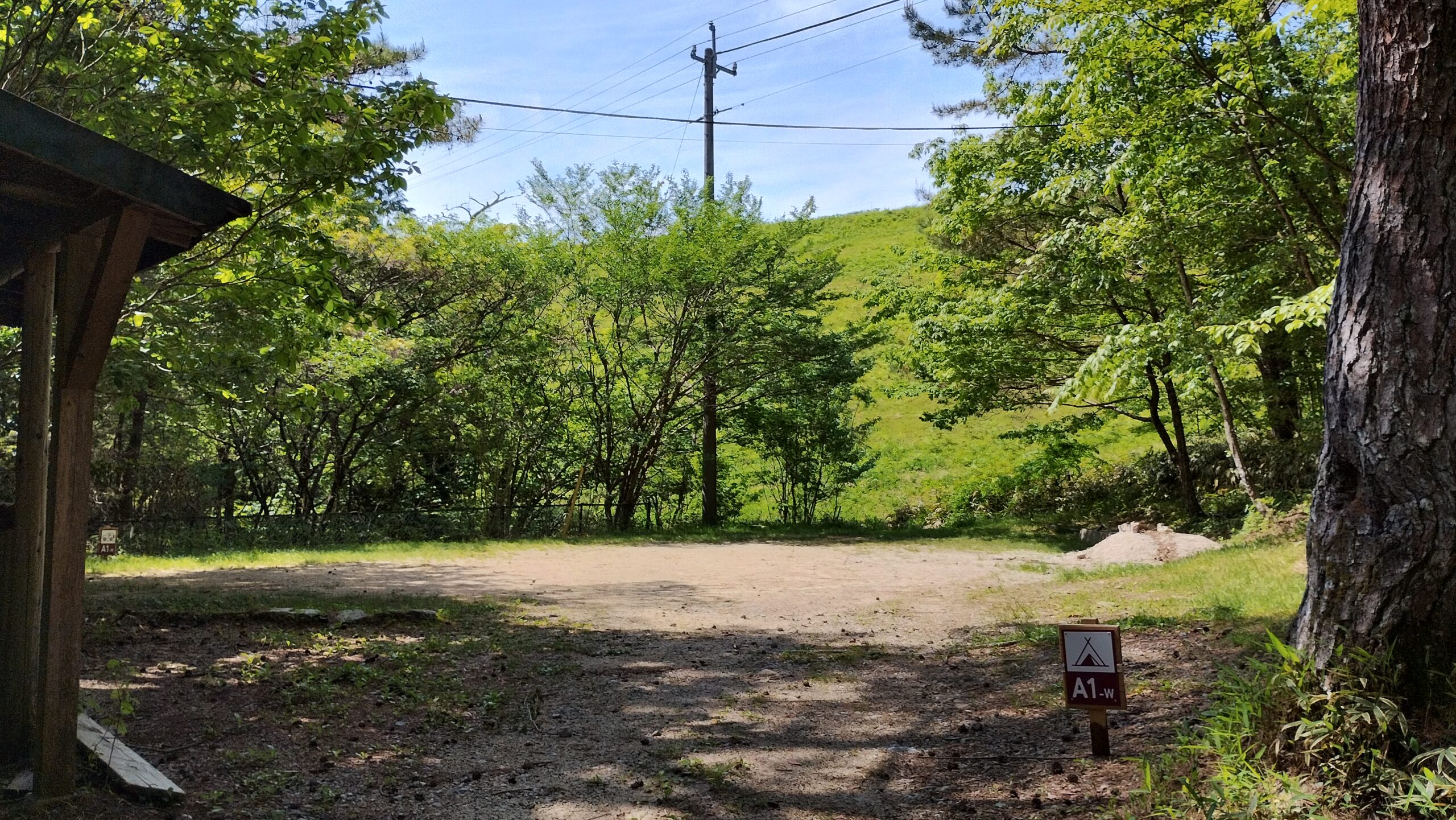 保古の湖に接していませんが湖を望める人気のキャンプサイトです。水場は近いですが、トイレは少し遠いです。