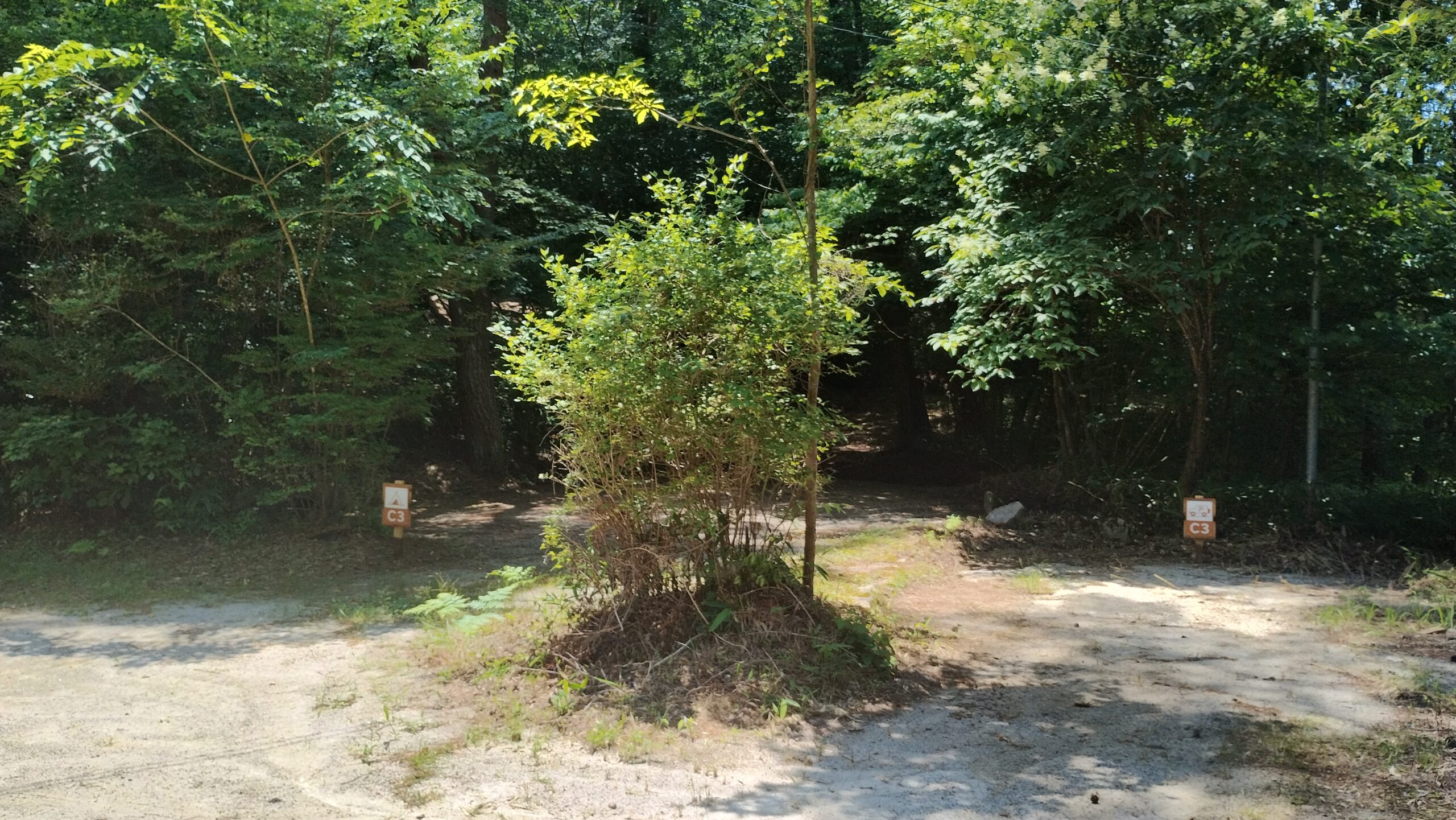 林間Cエリアでも他のキャンプサイトから少し離れた場所にあります。お手洗いは遠くなりますが水場に一番近いサイトです。