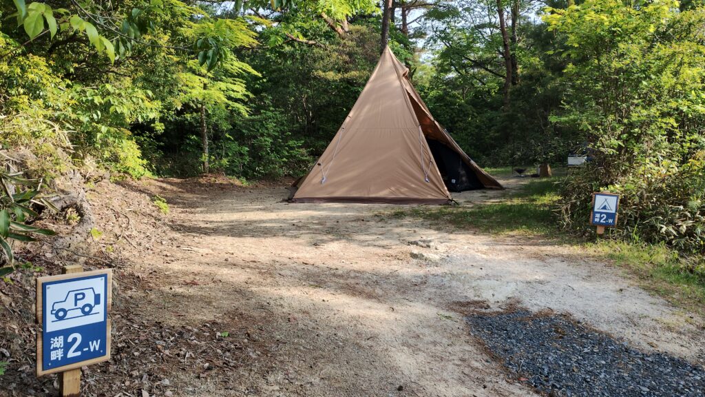 湖畔エリアの中で抜群のロケーションを誇るサイトです。水場は近いですが、トイレは少し遠いです。
